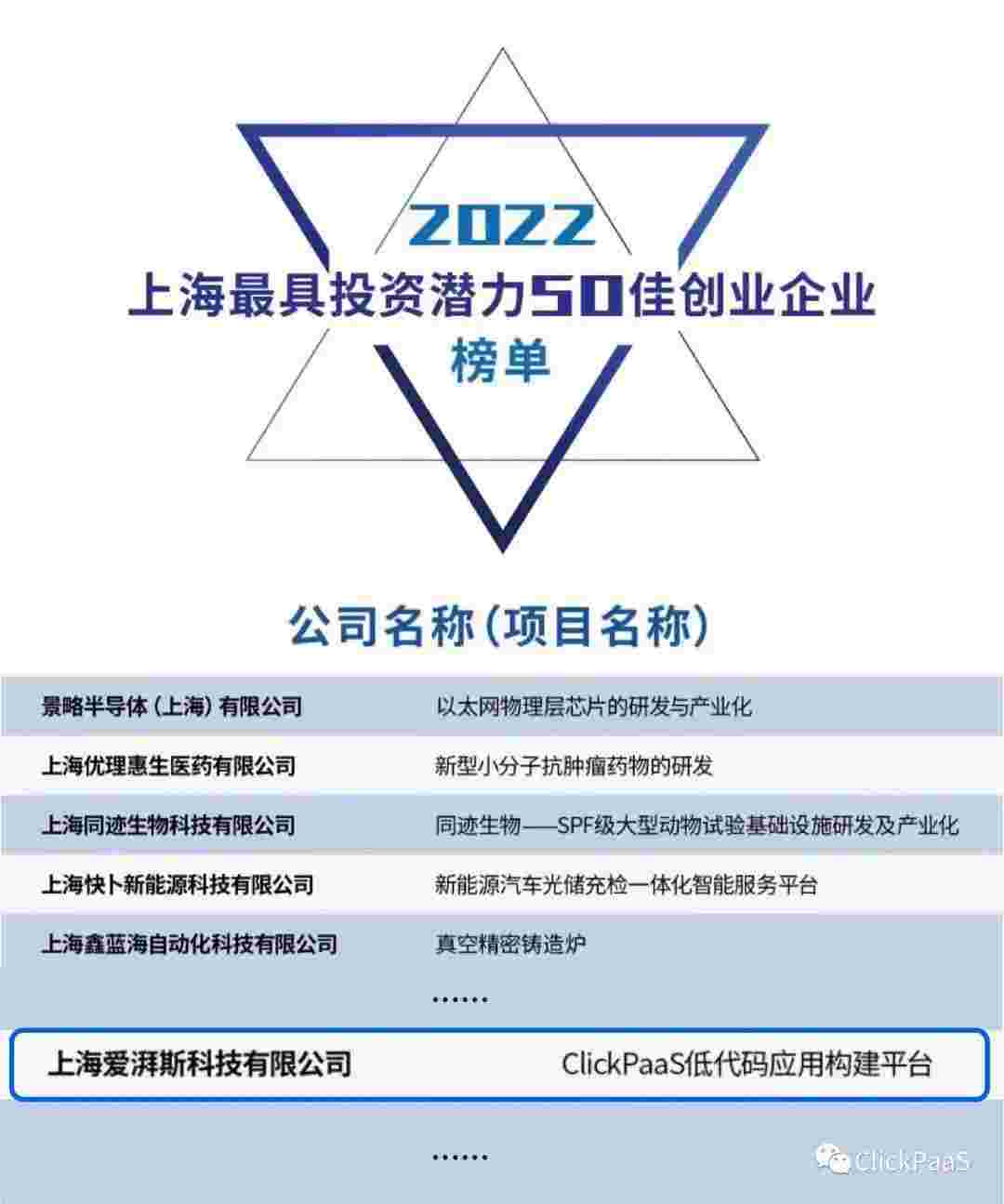 CGPAY钱包 作为国内低代码PaaS平台的领军企业,,,,与120家创企入围角逐。。期间接受了来自德同资本、、领中资本等知名投资机构的10位投资人组成专家评委团的背靠背盲选。。。。并最终入围“2022上海最具投资潜力50佳创业企业”榜单,,,被列入“上海市重点培育创业企业库”。。