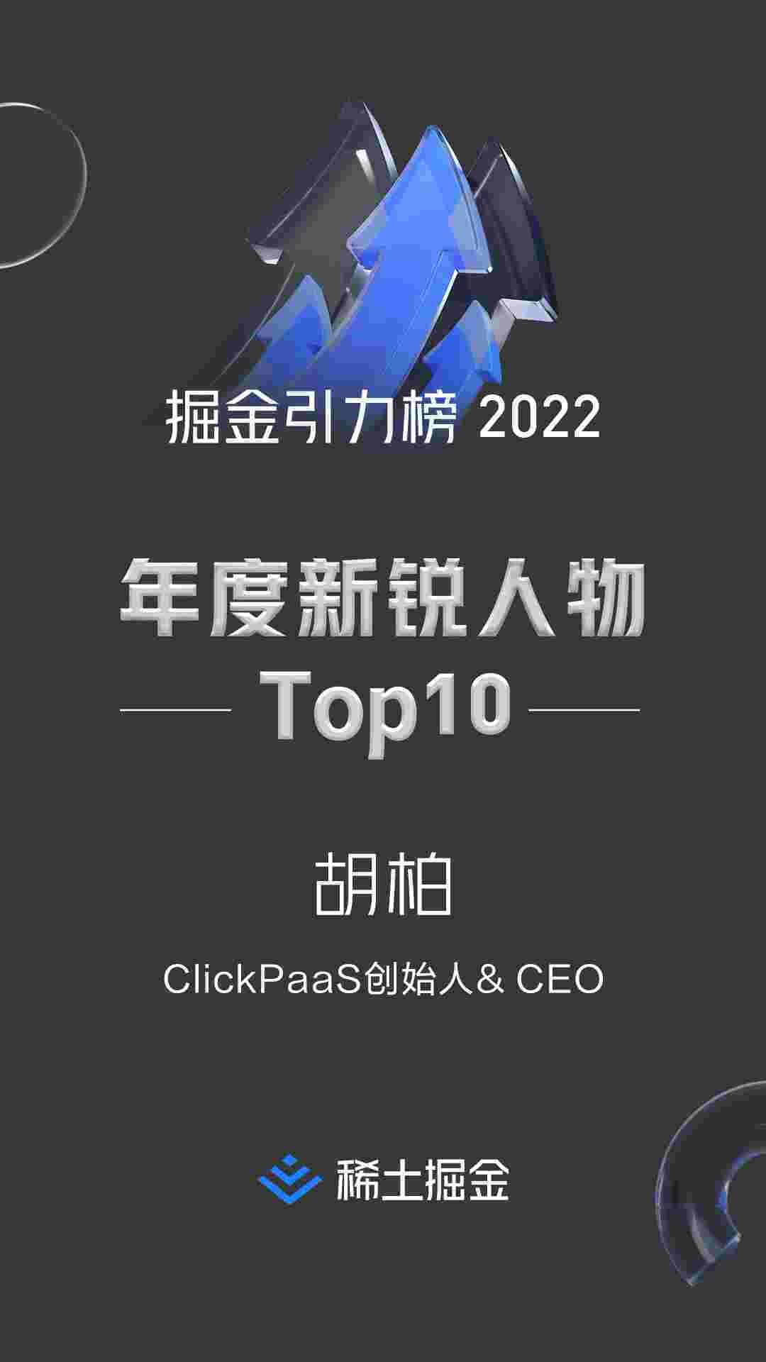 2022年1月6日,,,,稀土掘金社区第一届「掘金未来大会」成功举办,,,会上发布了“2022 稀土掘金引力榜 年度新锐人物”榜单,,上海爱湃斯科技有限公司(简称CGPAY钱包)创始人及CEO胡柏实力入选年度新锐人物TOP 10。。。。
